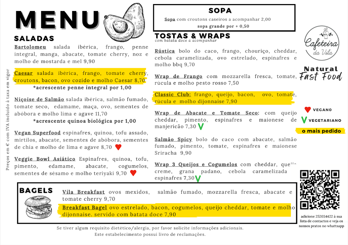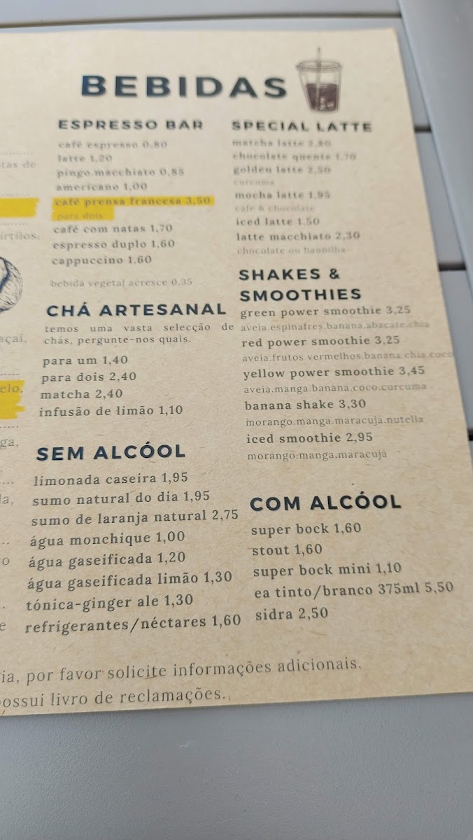 Don’t miss their comforting house-made soups, ideal for warming one's soul, and the delightful yogurt selections, including the fruity Papas de Aveia and indulgent Iogurte de Brownie. Customers rave about the generous portions and the warm, friendly service that makes each visit memorable.